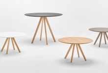 The base is produced in two heights of 40cm and 70cm and is made from natural oak wood. Their design allows them to be used in a variety of spaces and contexts.