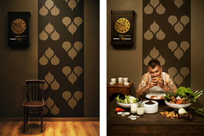 By tearing off pieces of the wallpaper, you can create your own unique space. The colour and texture underneath the wallpaper will become a significant element within the design.