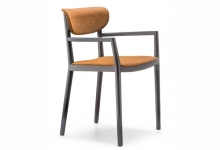 A clean design where the structural elements are perfectly integrated in the frame. The three-dimensional curves and the generous proportions of the back rest make Tivoli an ergonomic and elegant chair. Ash wood frame, upholstered seat and back with fabric or simil leather.