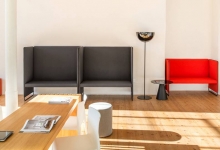 A niche of privacy where being isolated from the surroundings, a perfect place for a meeting, working on computer or talking on the phone. The height of 1000 mm and structure of side and back guarantee a good soundproof capacity. The seat, made of fire retardant injected foam with variable density and the slope backrest offer an extreme comfort. Along the perimeter runs a zip that outlines its shapes, so as to define its name. It can be covered with fabric or simil leather. Steel tube frame Ø16 mm is white, black or aluminium powder coated and matched with the zip colour.