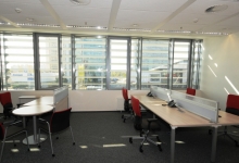 This airy concept of interior contains Kalidro, the desk system by Steelcase company.The desks are placed as individual pieces or in sets, based on the structure and needs of each department. Kalidro system is perfectly adapted for potential future reconfiguration according to preferences of the user.